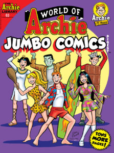 WORLD OF ARCHIE JUMBO COMICS DIGEST #63Archie and Chuck are decorating Chuck’s house for Halloween with the cutest decorations in all of Riverdale… wait a minute, cutest?! Halloween is supposed to be about spooky decorations and thrills behind every corner! Archie and Chuck set to take back Halloween as the scariest holiday of them all—with a little help from a bewitching friend. Will Archie, Chuck and Sabrina be able to successfully mark the first feast of the witching year, or is Halloween doomed to be boring? Find out in “The Fright Side,” the fun new lead story, filled with double the tricks and treats, in this JUMBO comics digest!