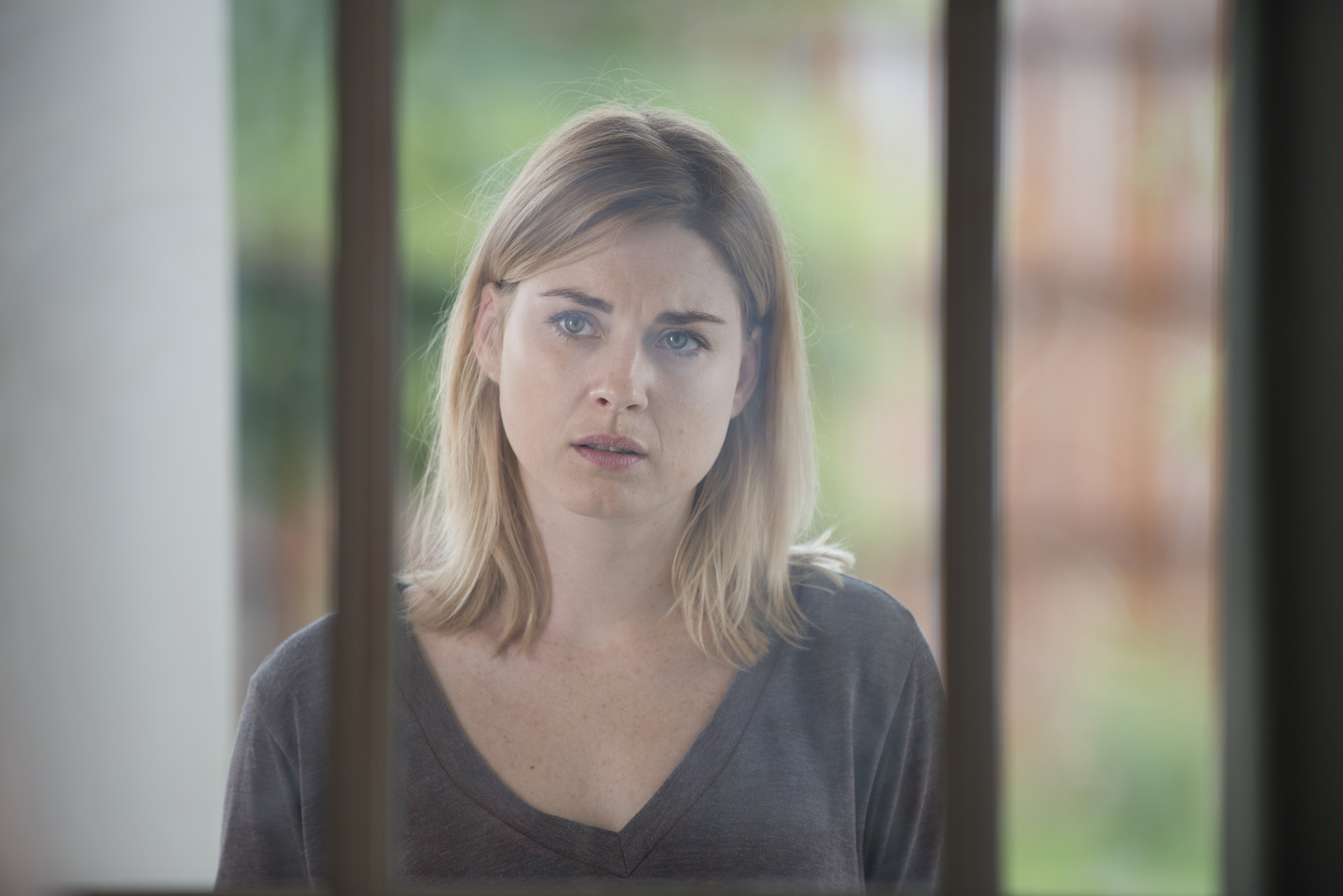 All is quiet in Alexandria in the aftermath of the Wolf attack. Deanna stands in the lookout tower once occupied by her husband Reg, surveying the carnage of the siege. She overhears Michonne recounting the events surrounding Glenn’s disappearance to Maggie until a yell from beyond the gates gets her attention. It’s Rick, the Harry Whodini of the walker apocalypse sprinting towards the community. Michonne and Morgan spring into action and open the gates just before he’s swallowed by the hoard of walkers. As the gates slide shut, several walkers reach through the bars grasping at the Alexandrians and a look of shock washes over Deanna’s face.