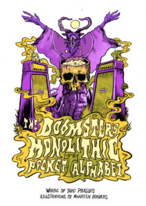 In five decades of wretched existence, doom metal has evolved into a vast orchard of unearthly delights. Bongs, goats, amps and a lot of naked nuns, all collide into this stunningly visualized, whimsical, mature-rated gift book. Explore the genre’s unholy rites with THE DOOMSTER’S MONOLITHIC POCKET ALPHABET, the definitive illustrated lexicon of all things doom. Or be doomed!