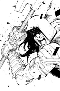 Many years from now, Los Angeles has become a post-apocalyptic wasteland and the once unstoppable killing machine known as BLOODSHOT has become THE ANALOG MAN. Hopelessly outdated, Bloodshot’s taken on a new role as the protector of a small town, eking out a subsistence existence with the great love of his life – Magic – and protecting a group of stragglers who’ve weathered the storm. But when a gang of marauders arrives, the settlement’s survival is threatened, and Bloodshot is forced to bring justice to the distorted and disjointed badlands of the Valiant Universe!