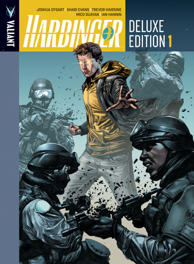 Cover by MICO SUAYANAn all-new printing for the oversized, deluxe hardcover collecting the landmark first year of Harbinger in the Valiant Universe!Skipping across the country in a desperate attempt to stay one step ahead of the authorities, psionically powered teenager Peter Stanchek only has one option left: run. But he won’t have to go it alone. As the shadowy corporation known as the Harbinger Foundation draws close on all sides, Peter must find and recruit other unique individuals like himself…other troubled, immensely powerful youths with abilities beyond their control: the Renegades. Their mission? Bring the fight back to the Harbinger Foundation’s founder Toyo Harada and dismantle his global empire brick by brick…Re-presenting HARBINGER #0-14 by New York Times best-selling writer Joshua Dysart (IMPERIUM) and an all-star cast of artistic talents – Khari Evans, Trevor Hairsine, Mico Suayan, Barry Kitson and more – the first deluxe hardcover collection of the series named Best Comic Series by MTV and Crave Online and Best Superteam by Ain’t it Cool News comes complete with more than 20 pages of bonus material, including character designs, script pages, in-process artwork, and much more.$39.99 US | 400 pages | T+ | On sale SEPTEMBER 2