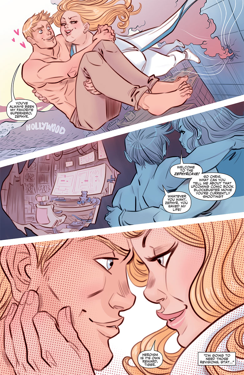 Orphaned at a young age, Faith Herbert – a psionically gifted “psiot” discovered by the Harbinger Foundation – has always aspired to greatness. But now this once-ordinary teenager is taking control of her destiny and becoming the hard-hitting hero she’s always known she can be – complete with a mild-mannered secret identity, unsuspecting colleagues, and a day job as a reporter that routinely throws her into harm’s way! Well, at least she thought it would… When she’s not typing up listicles about cat videos, Faith makes a secret transformation to patrol the night as the City of Angels’ own leading superhero – the sky-soaring Zephyr!