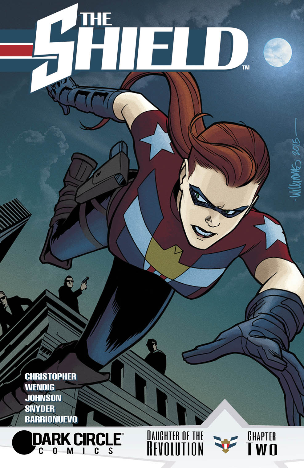 As Victoria Adams finds herself on the run in present day Washington D.C., dark secrets are revealed about her origins tied to the birth of the United States! With her memories gone and facing attacks from all sides, just whose side is THE SHIELD really on? Writers Adam Christopher and Chuck Wendig connect with artists Drew Johnson, Ray Snyder, Al Barrionuevo, colorist Kelly Fitzpatrick and letterer Rachel Deering to bring the next thrilling issue of THE SHIELD to life!Promising further reveals as to the mystery of The Shield’s origin, co-writer Adam Christopher explained, “With issue 2 we not only reveal another slice of the Shield’s 1776 origin, but we find out a little more about the factions who have been waiting for her arrival today – and the Shield has a big decision to make.”