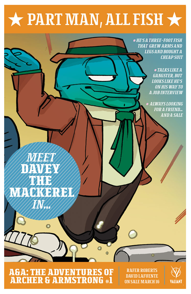 All this…plus the return of Mary-Maria and the Sisters of Perpetual Darkness! The landmark first appearance of Davey the Mackerel! Fleabag motels! A taste of the world’s greatest whiskey! And surprises galore! Take two aspirin and call us in the morning because, on March 16th, Valiant’s history-smashing heroes are going “IN THE BAG” for A&A: THE ADVENTURES OF ARCHER & ARMSTRONG #1 – featuring covers by David Lafuente (Patsy Walker: Hellcat), Kano (Swamp Thing),Trevor Hairsine (DIVINITY), Clayton Henry (HARBINGER WARS), Rafer Roberts (Carpool Buddies of Doom), and Phil Jimenez (Infinite Crisis)!