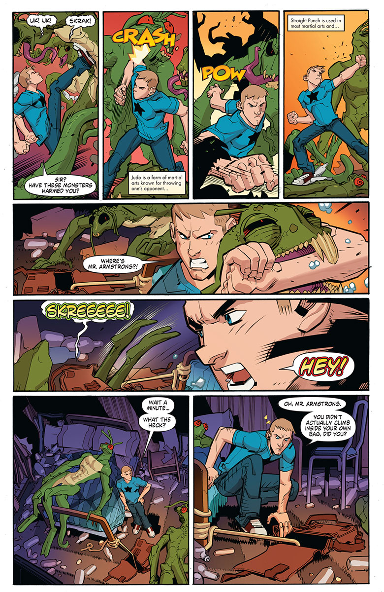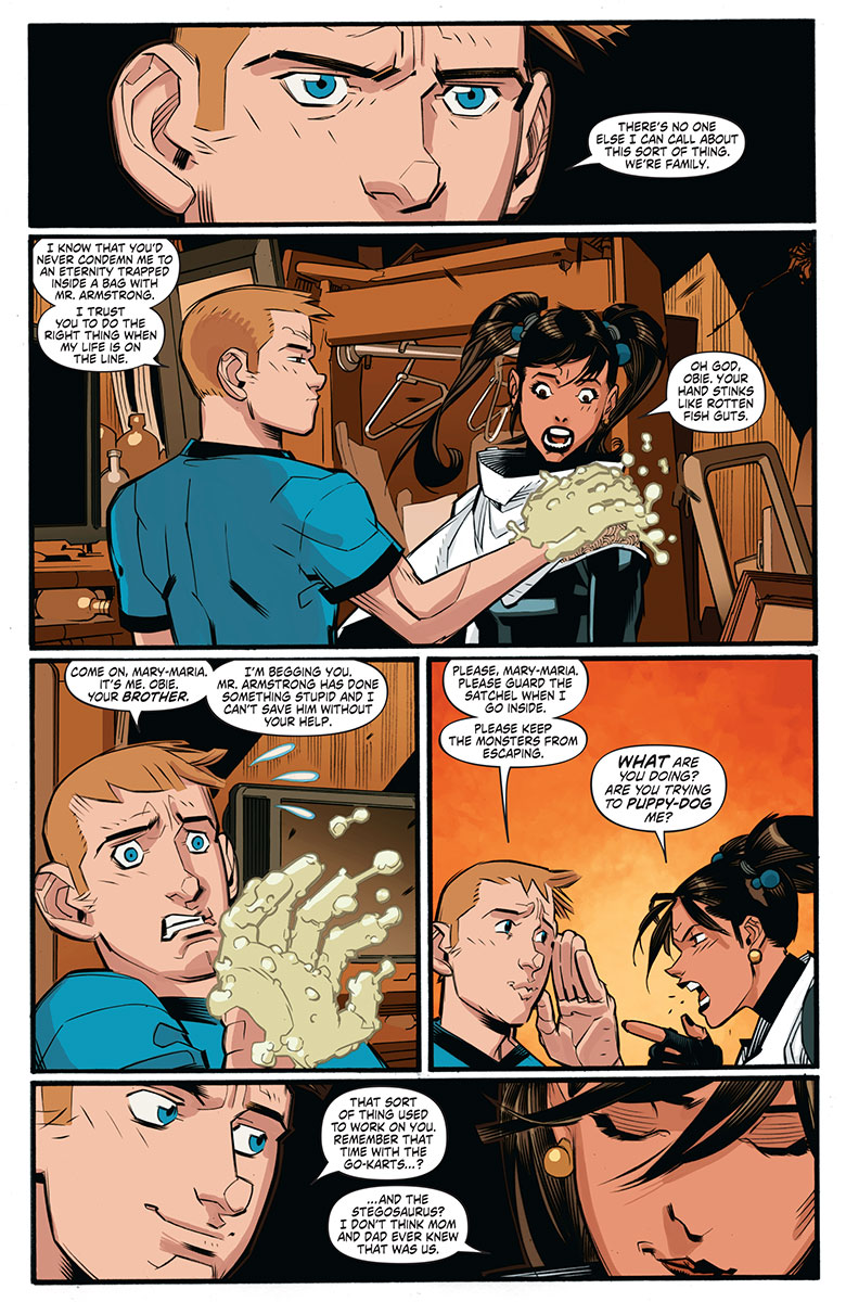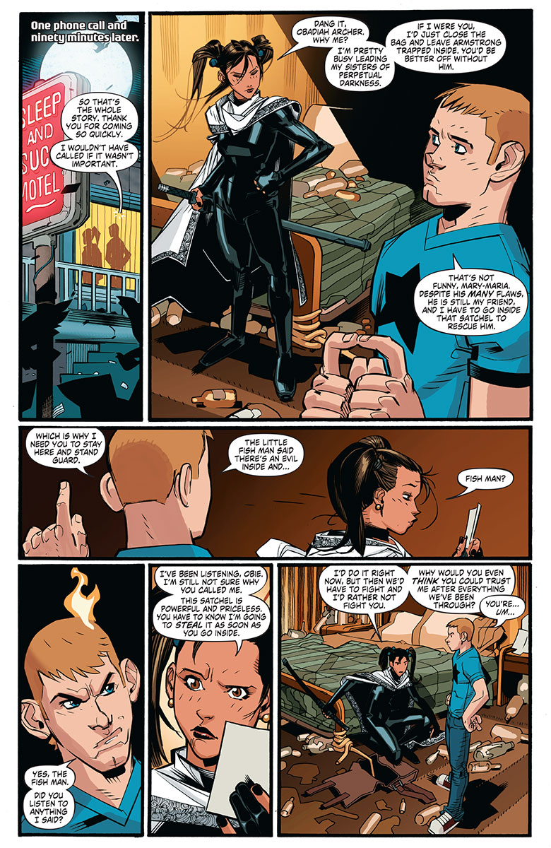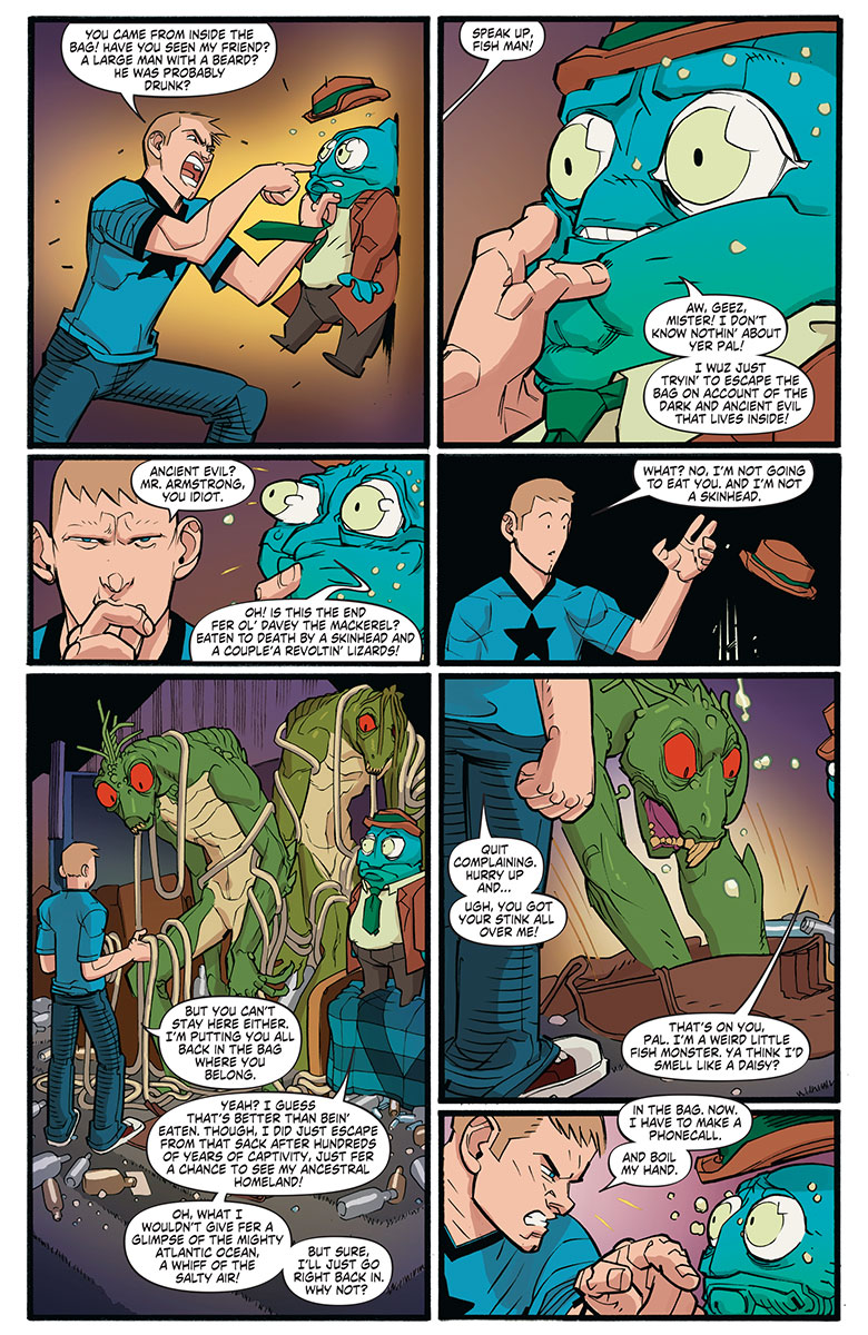 “Bacchus has…actually been trapped inside Armstrong’s satchel for thousands of years — a very, very long time, and he was put there by Armstrong, who was “joking around” and forgot that he had done it. [Laughs] There is a long backstory, but it’s basically an old friendship gone bad, and now Bacchus has great desire to get revenge,” writer Rafer Roberts told Comic Book Resources. “It’s really all about the mistakes that you made back in the day when you drank too much booze. Just because you don’t remember doing it doesn’t mean that you didn’t do something bad.”