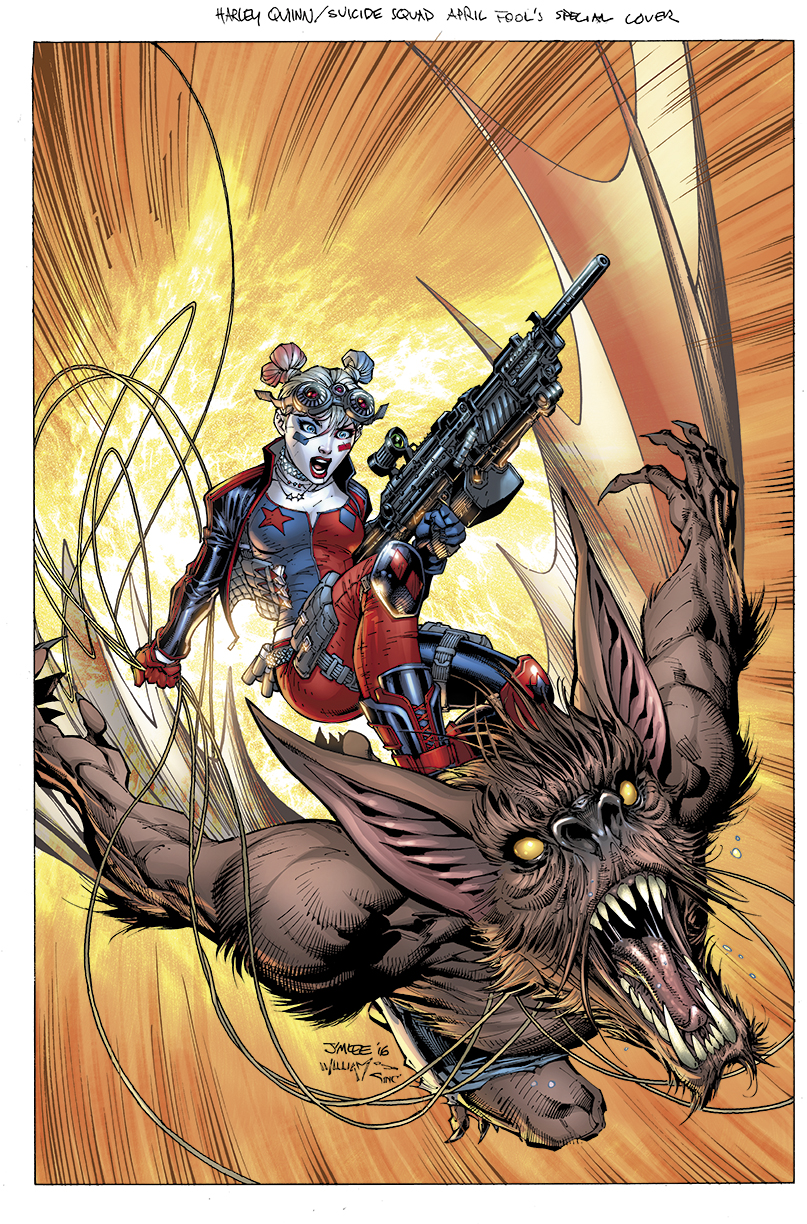 Later today, Jim Lee’s cover for HARLEY QUINN AND THE SUICIDE SQUAD APRIL FOOL’S SPECIAL #1 will be revealed at ComicsPro in Portland, OR. Written by Rob Williams with art by Jim Lee, Scott Williams and Sean “Cheeks” Galloway, the one-shot featuring the Clown Princess of Crime and Task Force X arrives on April 6th, 2016.