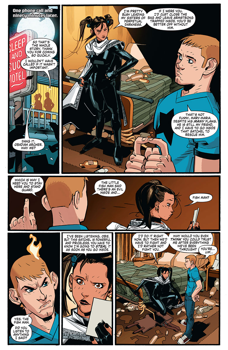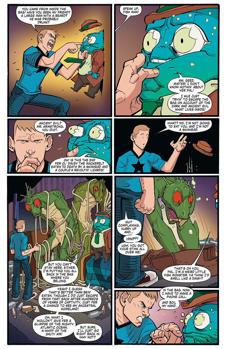 NOW: Archer is about to set off on his most dangerous mission yet – a quest into the mystic reaches of Armstrong’s bottomless satchel to liberate his friend and comrade from the clutches of the mad god Bacchus! Imprisoned in Armstrong’s satchel for centuries, Bacchus now commands a legion of monsters, goblins and golems bent on escaping back into the world of man and enacting revenge on their captor… Can Archer single-handedly combat the godly embodiment of intoxication himself – and rescue his best buddy – without becoming lost amongst Armstrong’s endless repository of bizarre artifacts and historical oddities in the process?