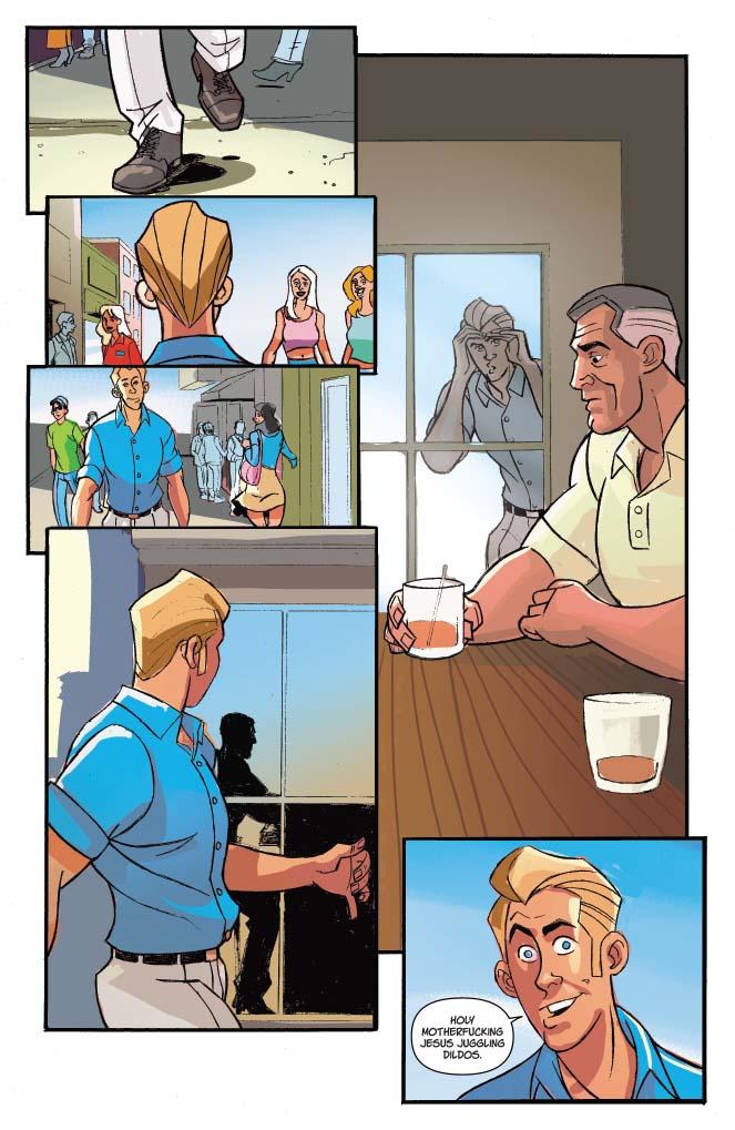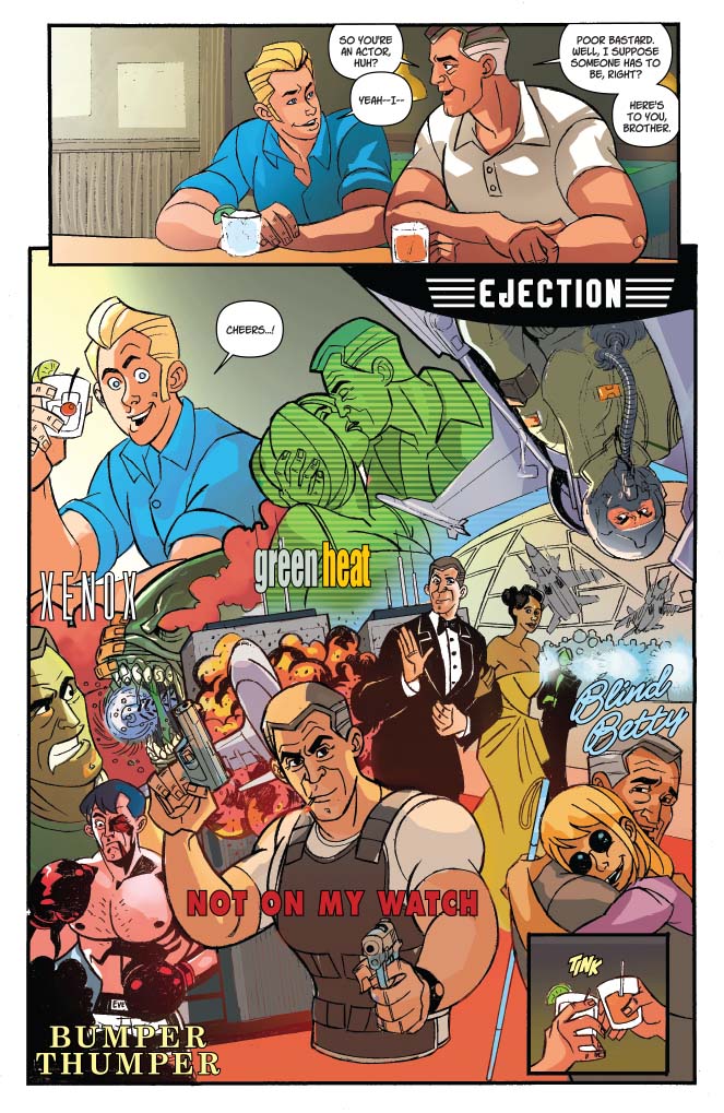 Call-me-Dave meets his all-time hero, a he-man action star who may not quite be all he seems. Marv and Penny sit down for a particularly fateful brunch, while Myles tells Valerie how he ended up in the employ of the dastardly Mister Monsta. Meanwhile, Jev’s new girlfriend turns out to be just a little too good to be true… Part three of A Train Called Love, by Garth Ennis and Mark Dos Santos.