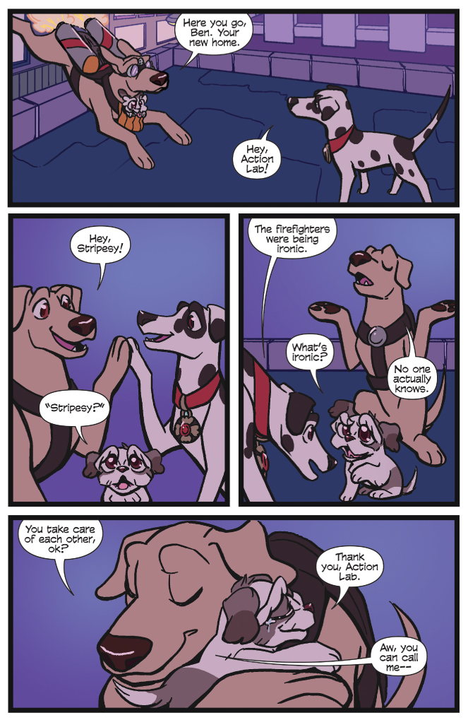 Action Lab’s adventure continues! After rescuing a falsely imprisoned dog in our last story arc, Percy and the Action Lab League set out to bring down a criminal dog racing ring! And not a hoax! Not an imaginary story! Percy’s secret is revealed and EVERYTHING CHANGES! Written by Scott Fogg and STRAY co-creator Vito Delsante with art by newcomer Reilly Leeds!! Collects issues 4 – 6!