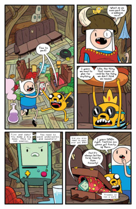 Synopsis: It’s a hot air balloon adventure! Finn and Jake decide to take their questing to the sky in this new story arc from novelist Delilah S. Dawson (Ladycastle)!