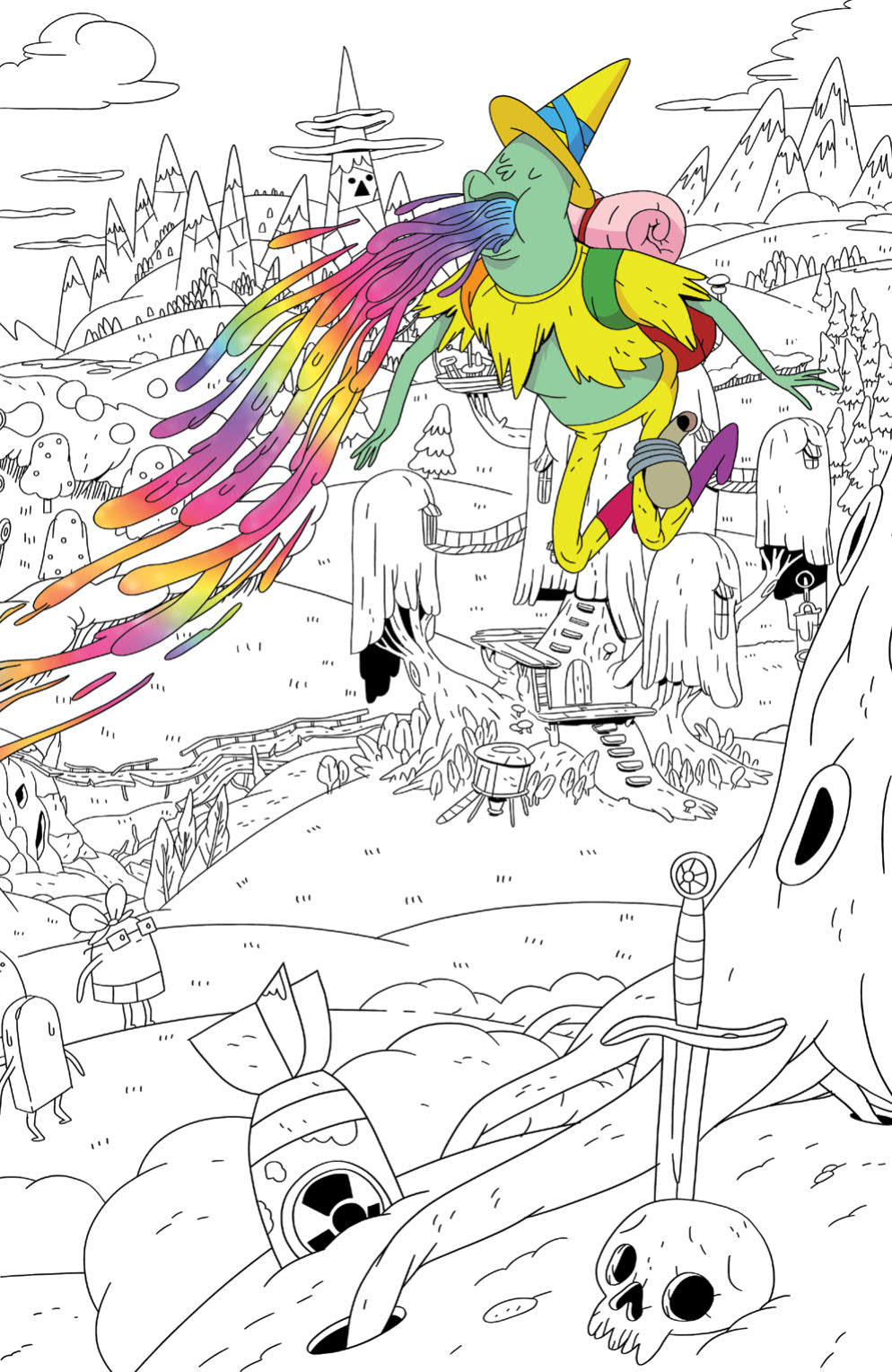 Synopsis: Magic Man is causing all of Ooo to lose its color! Only the brave hero holding this book has the power to bring color back to Ooo and set everything right before Finn, Jake, and everyone else is in black-and-white forever! Special coloring book issue!