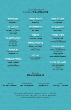 Synopsis: These sweet Adventure Time shorts come in many shapes and sizes, featuring all of the beloved characters from the Land of Ooo, written and illustrated by acclaimed cartoonists and storytellers from all over the world!