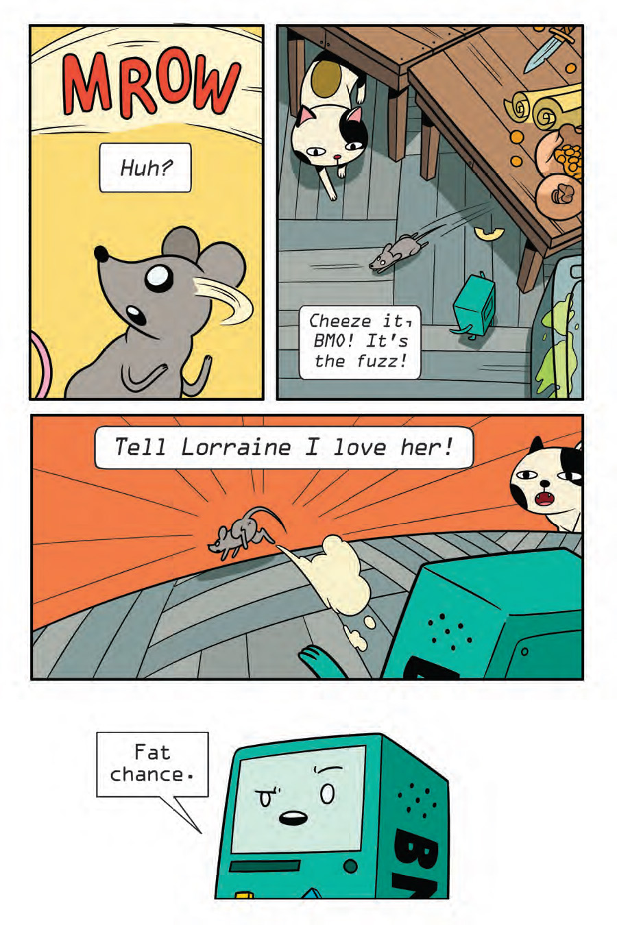 In this sixth Adventure Time original graphic novel, BMO and Jake are getting ready for the biggest costume party ever—they’ve received invites from everyone! As they party-hop, they realize that each party has one thing in common: a prankster. Detective BMO is on the case with the help of Jake, his sidekick, to figure out what’s going on. Join them as they travel all across Ooo to find who the culprit is, while still enjoying some fun times with friends.
