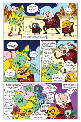 Synopsis: Finn and Jake find themselves in the middle of a secret war when they inadvertently take out Peppermint Butler’s secret agent, Candy Bar! There is something amiss with the King of Ooo and the weird bears that he’s hanging out with. It’s up to Finn and Jake to get to the bottom of the King’s dastardly plot! If only they weren’t being accused of treason in the process.
