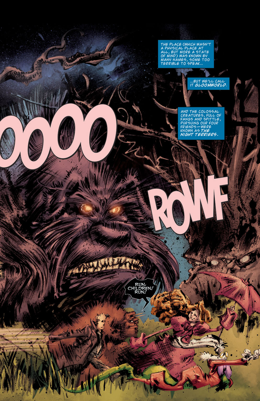 Beginning the five-issue conclusion of this epic, all-ages fantasy! With a malevolent entity about to un-tell every story ever told, erase every character ever imagined (including you!), it’s up to Augusta Wind, Mr. Snabbit, the Omniphant and Upton Snuff to stop the Story Killer and save the Storiverse. But weird worlds, bizarre creatures and terrible dangers await them—and victory is not assured!