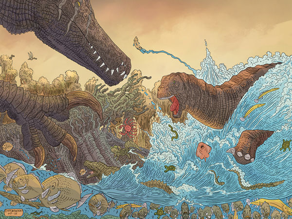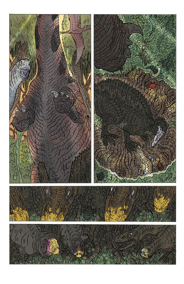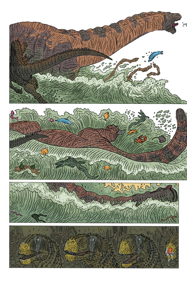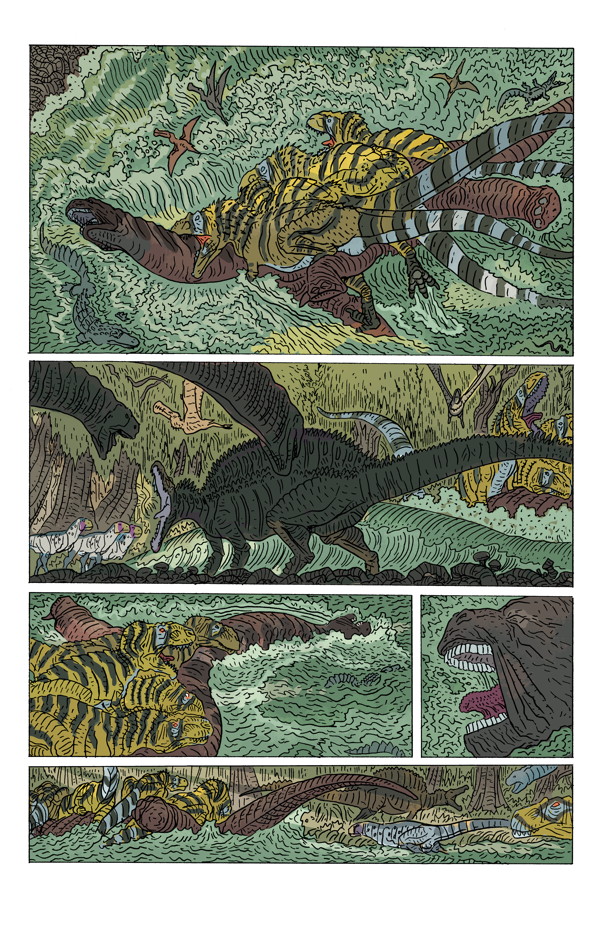 Ricardo Delgado’s latest tale of survival and the cycle of life in Cretaceous Africa! Will the lone, deadly Spinosaurus aegyptiacus survive to see another day? With colors by Ryan Hill (House of Night, Judge Dredd: Mega-City Two), this powerful, beautifully detailed adventure comes to a dramatic finish!