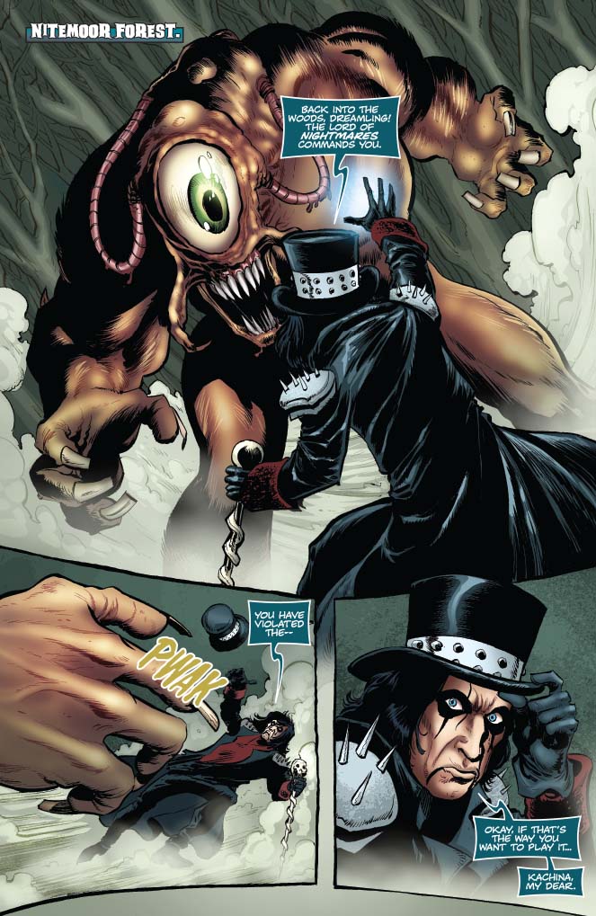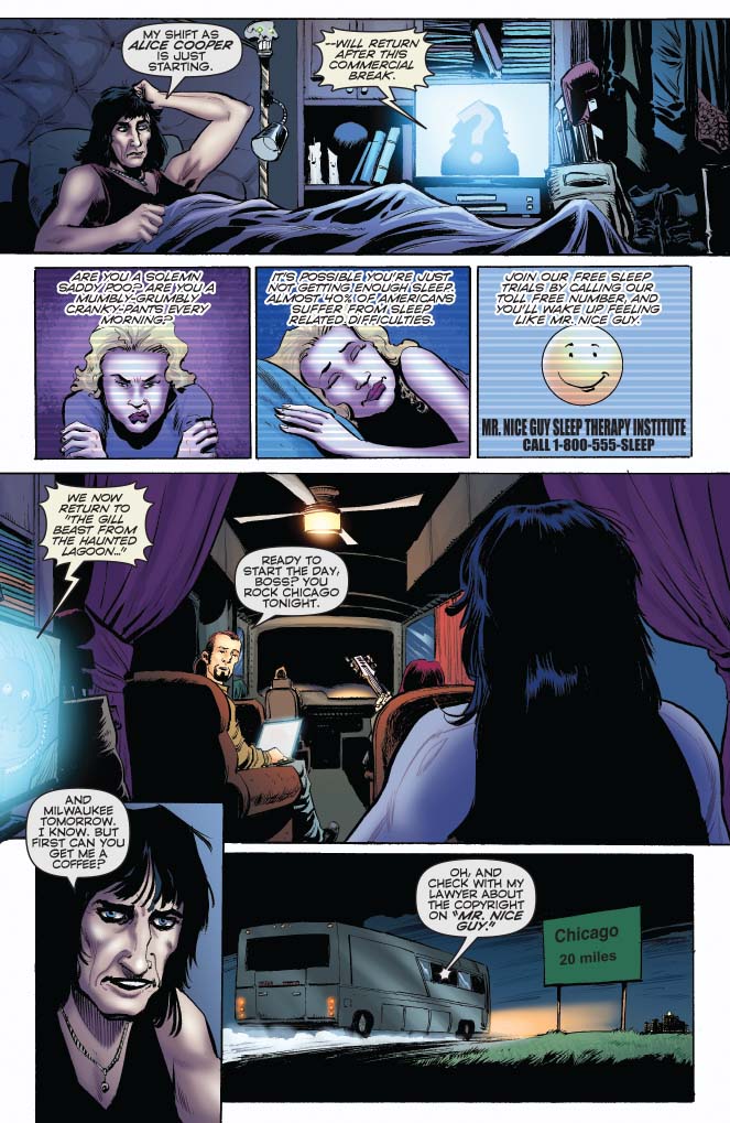 It’s the ultimate heavy metal crossover as the original shock rocker meets the original death metal comic book universe! Bizarre nightmares are plaguing Evil Ernie, Chastity and Purgatori, and though they hate each other’s guts, they may have to join the teen monster team called The Chosen to find the one and only Alice Cooper!