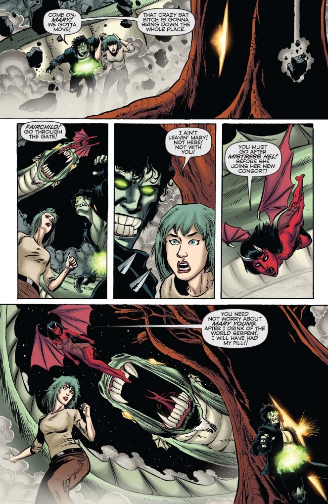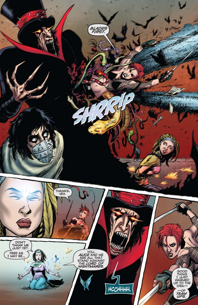 This is it! The union of Mistress Hel and “Evil” Alice Cooper has dominated the realm of nightmares, and it won’t be long before they plunge the world into horror. The monsters of the Chaos! universe must rescue the real Alice and keep from killing each other long enough to save us all!