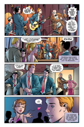 BRAND NEW SERIES from the writing team that brought you ARCHIE: 1941! Can a rocking teenager from a small, sleepy town find fame and fortune through this new phenomenon called “rock and roll”? When Archie Andrews proves to a local DJ that he’s got the makings of a hip-shaking stardom, he begins an ascent to fame that will carry with it both triumph and tragedy.