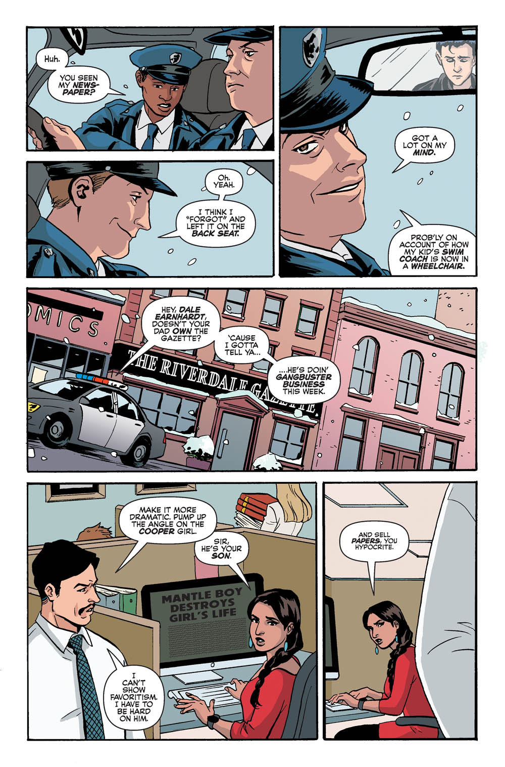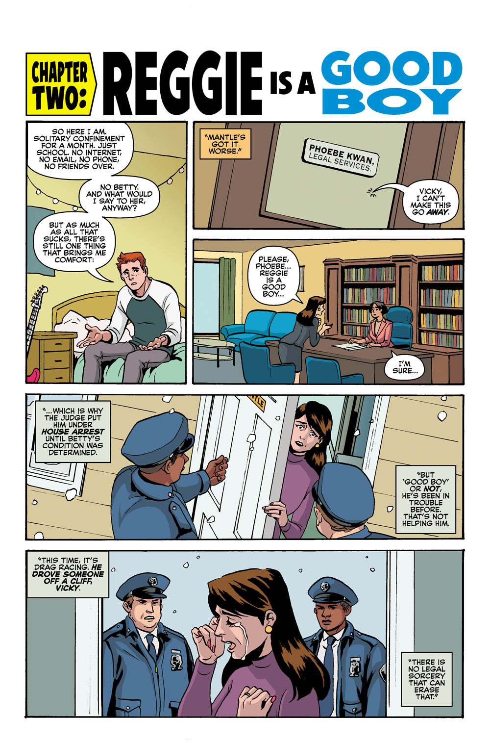 The fallout from OVER THE EDGE continues! One of the Riverdale kids has become a pariah in town, so it’s either run or face a life filled with hate and violence! Join us as we welcome new interior artist Audrey Mok (Josie and the Pussycats).