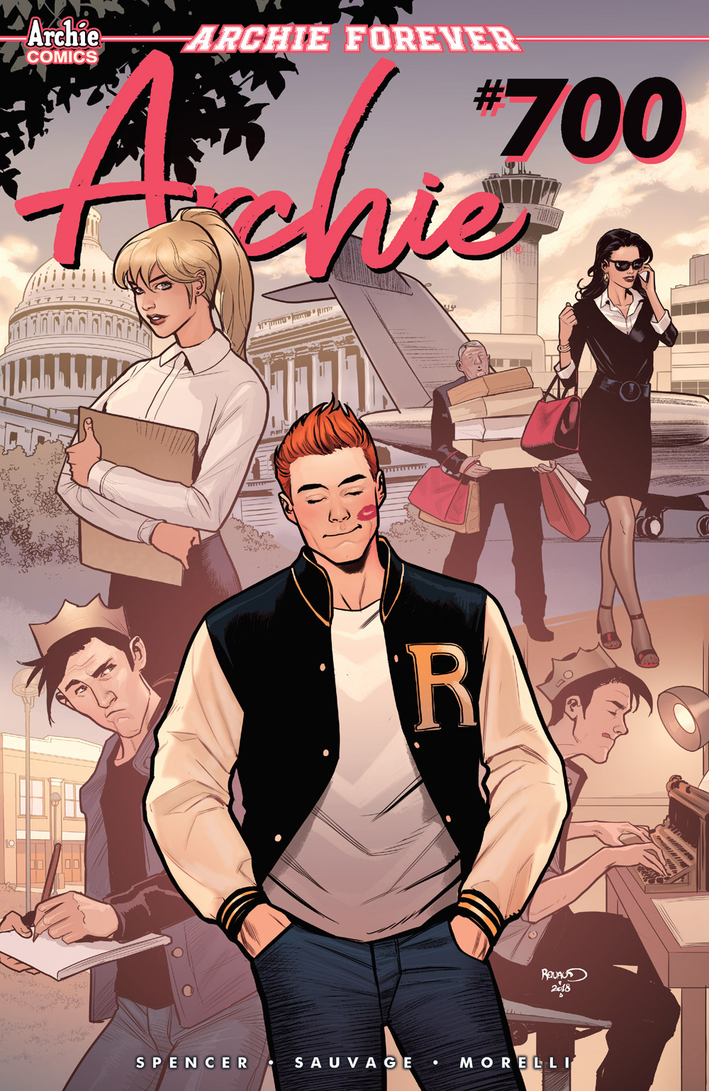 A brand-new era of ARCHIE begins in this landmark 700th issue of our flagship series! Join the new creative team of writer Nick Spencer (The Amazing Spider-Man) and artist Marguerite Sauvage (DC’s Bombshells) as they take a trip to Riverdale and bring Archie, Betty & Veronica, Jughead, and the rest of the town along for a wild ride complete with new mysteries, new relationships, and much more!