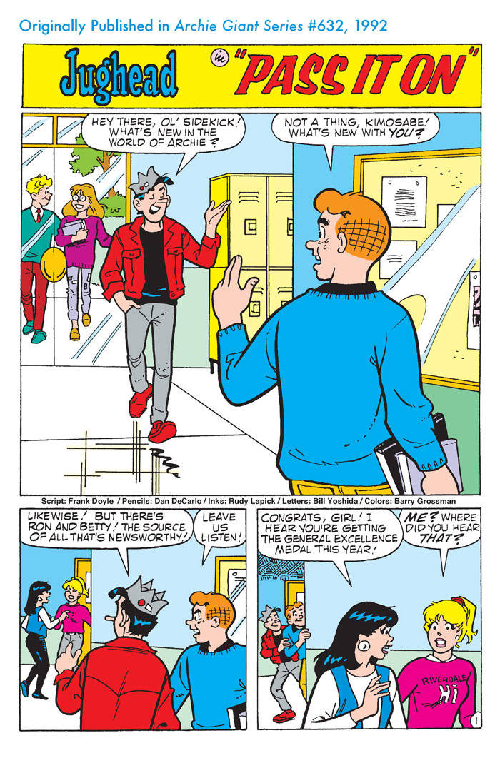 Script/Art: Harry Lucey, Terry Szenics, Frank Doyle, Dan DeCarlo, Rudy Lapick, Vince DeCarlo, Joe Sinnott, Stan Goldberg, Barry Grossman, George Gladir, Mike Pellowski, Bill Yoshida, Jim DeCarlo, Joe Edwards & Bill Vigoda