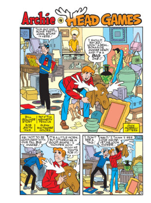 NEW CLASSIC-STYLE STORY: “Head Games!” Archie and Jughead take a trip to a unique secondhand store where they find Big Moose—no, not their friend, a decorative moose head that causes a whole load of trouble for Archie!