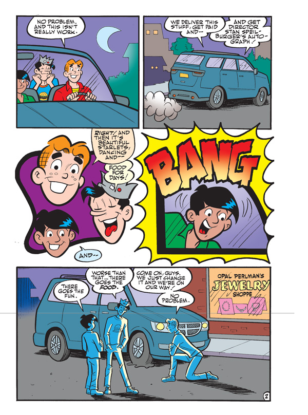 What was supposed to be a fun trip to a movie set ends up in a real-life crime caper! Will it be up to Archie, Jughead and Raj to save the day? Find out in “Go Figure,” the entertaining new lead story to this comics annual, featuring even more pages of fun!
