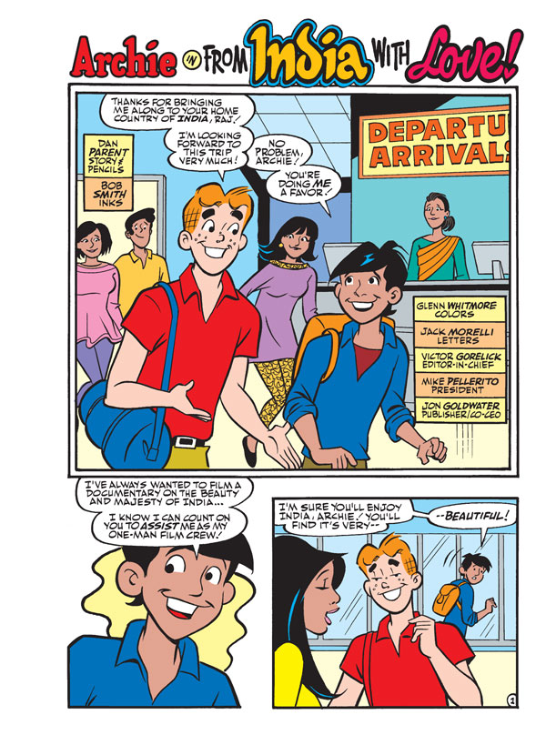This month, digests go global! In the NEW LEAD STORY “From India, with Love,” Archie’s friend Raj needs help with a movie he’s making, so Archie travels with him to India!
