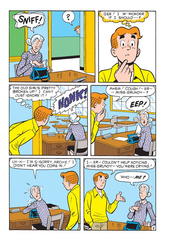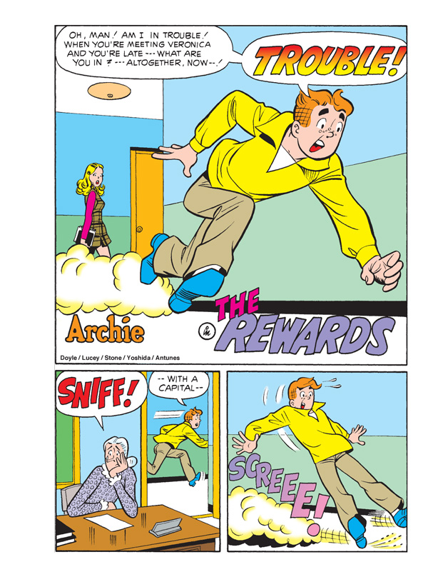 When Mr. Weatherbee has had enough of the teens’ sloppy attire in the halls of his school, he decides to enforce a mandatory dress code for Riverdale High. Unfortunately, the new dress code is a bit too high class for some of the students. Can they afford to look presentable? Or will they end up making clowns of themselves? Find out in “Mess Code!” the fun, all-new lead story to this comics double digest!