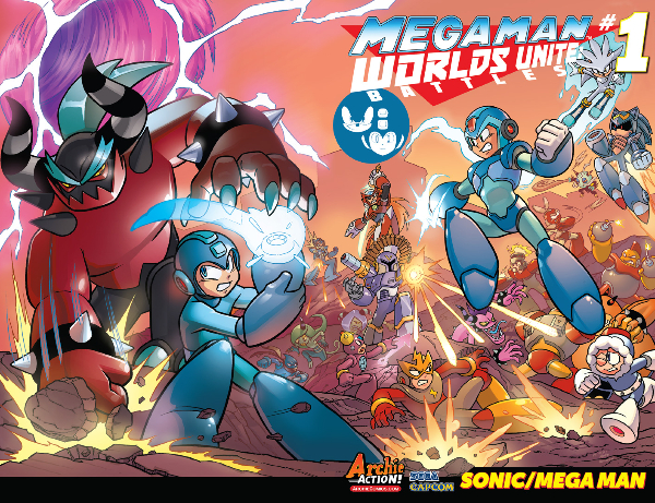 ALL-NEW DIRECT MARKET-EXCLUSIVE special! There are so many epic battles in the SONIC/MEGA MAN crossover event that the biggest brawls of the bunch have exploded into their very own book! This extra-special bonus issue features exciting duels spilling over from the pages of the much-talked about “Worlds Unite” event, and feature an all-star cast of creators! Watch Mega Man bring the ruckus to the Deadly Six, the Maverick Hunters ultimate showdown with Vile and Dr. Light’s Robot Masters tussle with the unstoppable power of hero-turned-uber-villain Sonic Man! LET’S GET READY TO RUMBLE! Also featuring variant art from Patrick “SPAZ” Spaziante, and a special wrap-around cover and sketch variant by Sonic and Mega Man superstar Jamal Peppers!