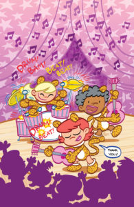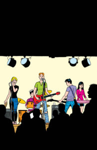 More MUSICAL MADNESS in the NEW story “The Fill-In”! The Archies are at the end of their latest tour when the unthinkable happens: Jughead gets sick from eating some bad food at a hole-in-the-wall on the road. They need a replacement drummer …fast! Introducing… Jughead’s little sister Jellybean!