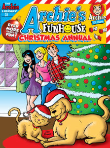 ARCHIE’S FUNHOUSE CHRISTMAS ANNUAL #23Pop Tate is anticipating a Christmas rush in his Chocklit Shoppe thanks to his newest idea: fresh, homemade apple pies. He enlists the help of neighborhood kids to work during the holidays. Fortunately, Archie is in need of some spending cash. Unfortunately, so is Jughead. Can the Burgermeister of Riverdale resist the temptation of being surrounded by delicious baked goods long enough for Pop’s to make all of his sales? Find out in “My Deer Archie” the fun and festive new lead story to this Christmas Annual, featuring even more pages of holiday humor!