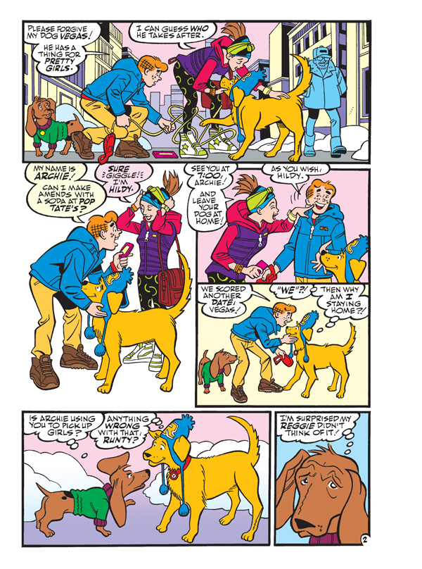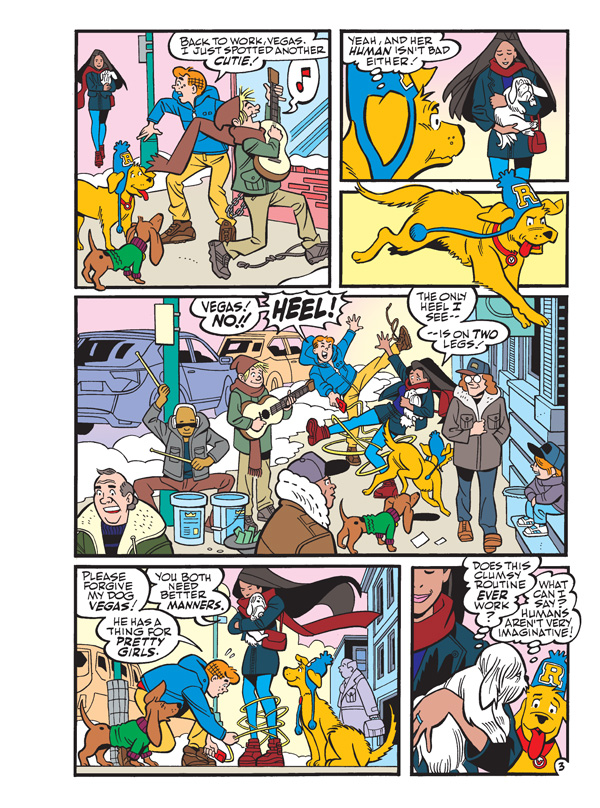Archie loves spending time with his best furry friend (and wingman!), Vegas. The two are an unstoppable duo: especially when it comes to collecting phone numbers from girls! But Archie’s not the only one getting the girl: this time, Vegas has landed himself a date! But when the two wander off together during an impending winter storm, it’s up to Archie, his friends and their pets to band together and track down Vegas and his lady. Can they save them before the storm hits? Find out in “Lucky Dog,” the heartwarming lead story to this JUMBO-sized comics digest!