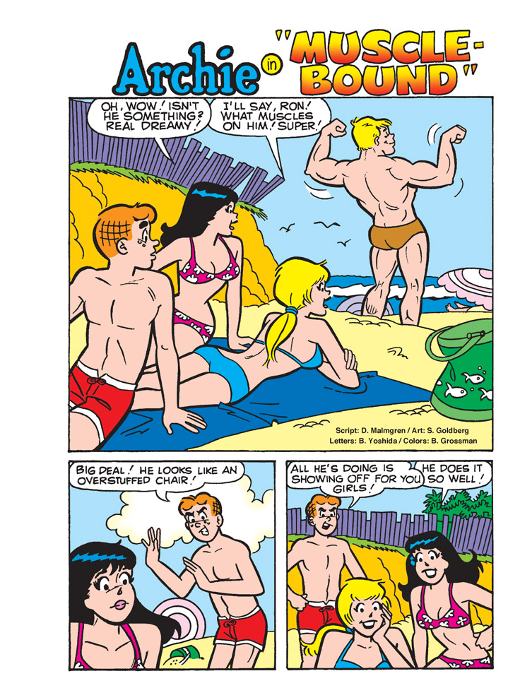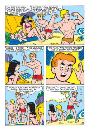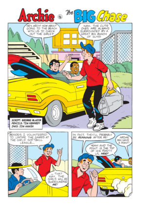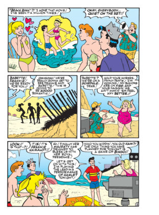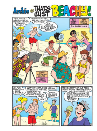 Brand New Lead Story: “That’s Just Beachy!” – It’s the 50th reunion of the classic “Beach Bash” films, and it’s being filmed on Riverdale Beach! The gang is excited when they’re cast as extras in the new film! But with the old stars bickering like crazy, how will they move this production forward? Archie and Betty have a plan!
