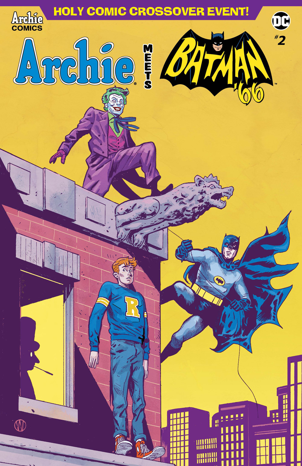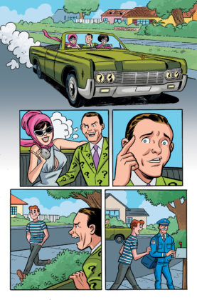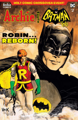 ARCHIE MEETS BATMAN ’66 is a six-issue crossover with DC Comics written by Batman ’66 scribe Jeff Parker and Michael Moreci, with art by Dan Parent, inker J. Bone, colorist Kelly Fitzpatrick, and letterer Jack Morelli. When Gotham City’s villains (as seen on the classic Batman TV series) infiltrate Riverdale, two pop culture icons collide!