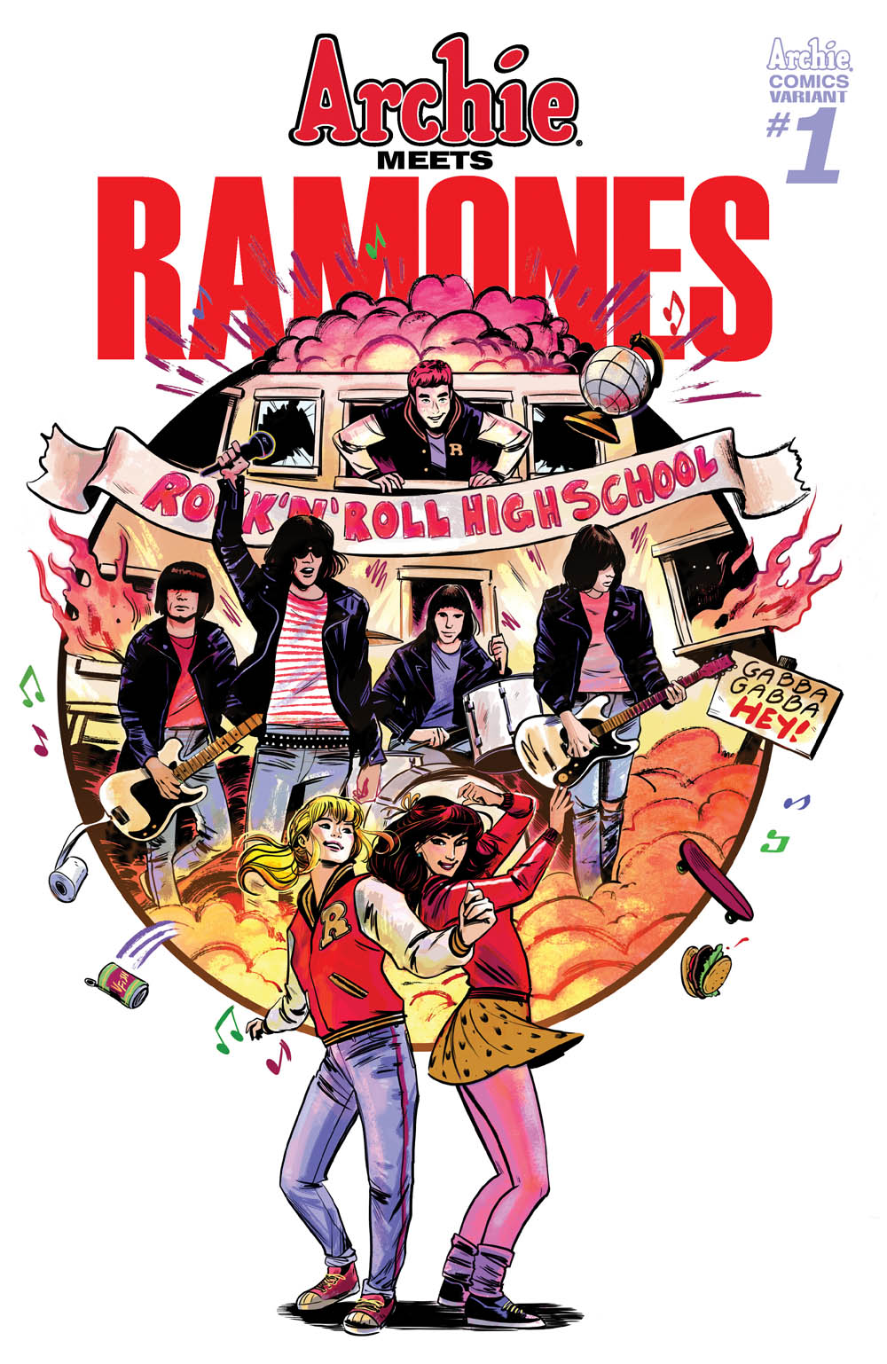 When the Archies tank at the Riverdale High Battle of the Bands, a magical twist of fate sends them hurtling into the past—and face-to-face with none other than the Ramones! Can the legendary punks get the Archies to realize their own rock ‘n’ roll potential and find their way home? Probably not—but it’ll be a blitzkrieg bop of a journey, as the two bands bounce from 53rd and 3rd to Rockaway Beach in this must-read crossover from the writers of the best-selling ARCHIE MEETS KISS and WE CAN NEVER GO HOME with jaw-droppingly beautiful art from Gisele Lagace (“Occupy Riverdale”)!