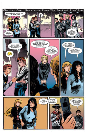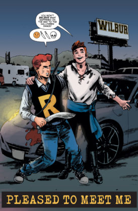 Our trios (new and old) are getting to know each other better—like Classic Betty and Veronica discovering that the newer versions of themselves actually AREN’T both trying to win over Archie’s affections. There’s a lot to take in in this brave, new world, but they’ve got a more pressing issue to deal with: Predator-Archie is quickly turning back into a Predator, and time is running out. Fortunately, the Riverdale Halloween Dance may be just the cover the gang(s) need.