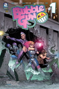 Creator and writer Mark Roslan (Broken Pieces) is joined by penciler Angel Tovar () and colorist Erick Arciniega () on what’s sure to become one of comics’ biggest sci-fi, action adventure series of the summer! Strap yourselves in because BUBBLEGUN is gonna take you on a wild ride!