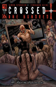 PRODUCT DESCRIPTION: As the procurement team from the bridge reach their goal of the Pharm-Rite drug store and face the unthinkable horrors awaiting them, the alliances of those they left behind with newcomers Morgan and Olivia begin to erode. Following the “gospel” of the women’s survival guide, the survivors on the bridge and on the ground find their once sound confederacy unraveling. But which is worse- The maniacal, natural urges of the Crossed, or cold, calculated murder by someone who is uninfected? Available with Regular Cover by Christian Zanier, Wraparound &Torture Cover by Nahuel Lopez, C-Day Worldwide Cover by German Nobile, Art Deco Cover by Michael Dipascale, and Red Crossed Incentive Cover also by Zanier.