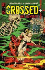 PRODUCT DESCRIPTION: Simon Spurrier continues to deliver a dire new tale based on the extensive world-building notes from Alan Moore! A few years after the events of the first Crossed +100 arc, Future attempts to prepare the people of Murfreesboro for the horrors she saw. But an exploratory balloon ride to the outlying settlements provides an ominous warning that the relative peace that the surviving humans managed to scrape together has begun to crumble. Every nuance of this series has been inspired by the masterfully detailed outlines of Alan Moore.