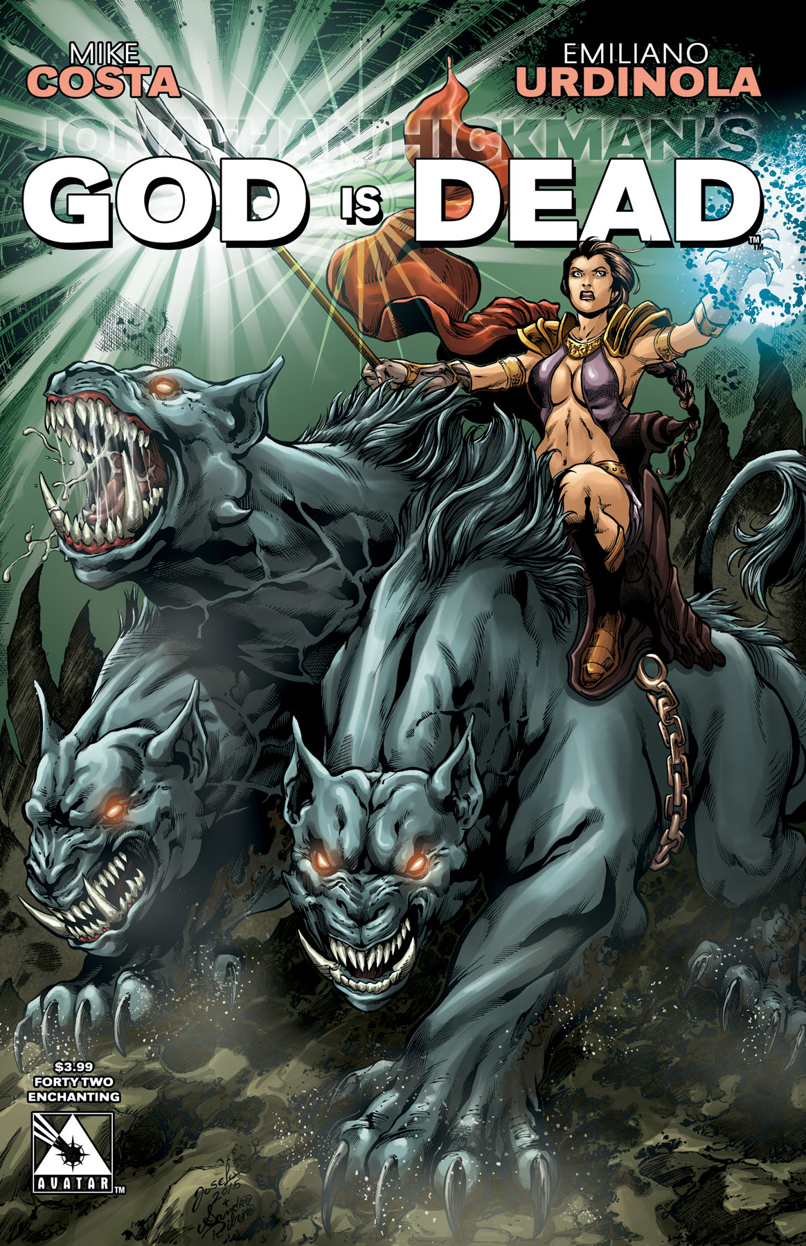 PRODUCT DESCRIPTION: The world has been remade and the realms of man and god are separate. With the slaughter of gods fighting daily, being reaped, and set back to combat, all seems truly futile. But somewhere, voices from Earth’s past are weaving stories about the realms of both the mortal and the divine. And those tales may spell doom for the peace that has divided the two realms in new creation. Available with Regular Cover by Jacen Burrows, Enchanting & End of Days Covers by Jose Luis, Iconic Cover by Juan Frigeri, a Carnage Wraparound Cover by German Nobile, and a special Gilded Incentive Cover also by Frigeri.