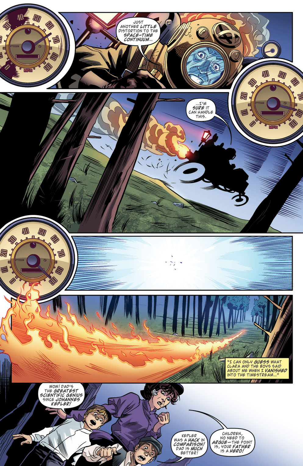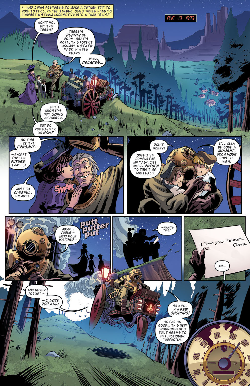 DOC’S STORY! Is he a man out of time? A visitor from another reality? An alien? A robot? Eighteen hyper-intelligent hamsters in a rubber human suit? Well, definitely not the last one—but the mystery of memoryless Doc Brown is solved… just in time for things to really get exciting.
