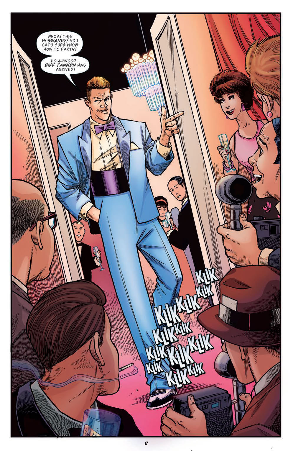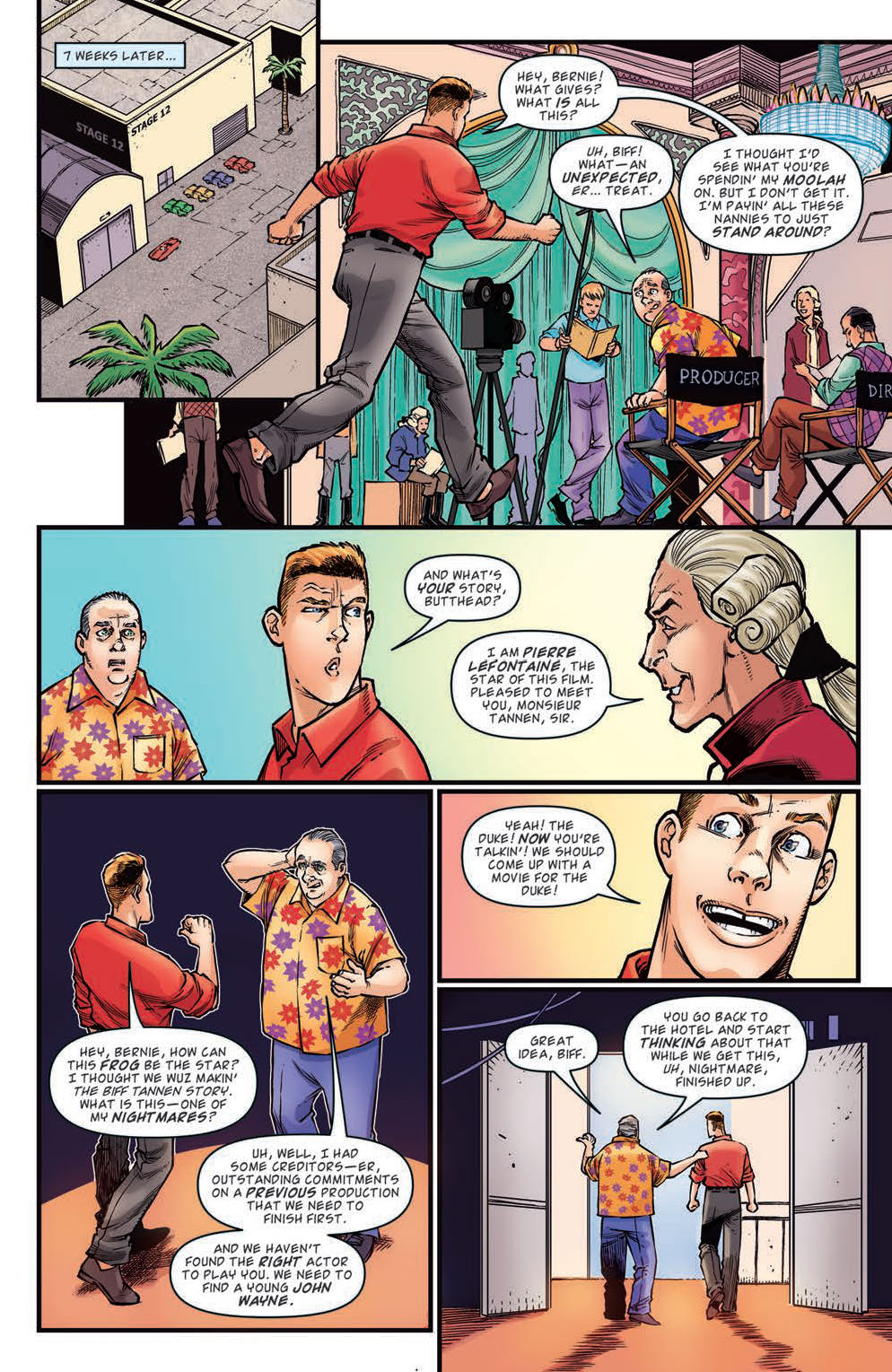 “Biff Goes To Hollywood.” When you’re a famous young man with a bulging wallet and healthy libido, what do you do? You go to Hollywood, of course, and you chase beautiful women, hang out with movie stars… and maybe even buy a studio to produce your life story! But when you’re Biff Tannen, you can be certain things are going to get… messy.