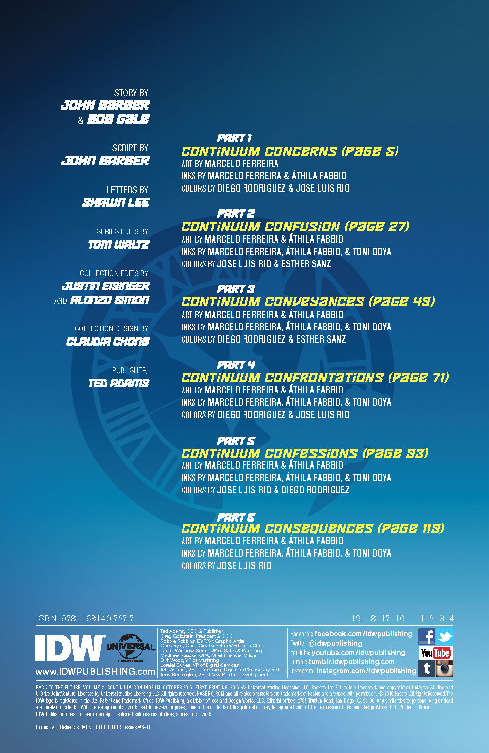 Spring, 1986. Marty McFly, depressed because life without Doc Brown is just plain boring, receives an alarming letter from Clara in 1893: Doc has disappeared in the time stream and Marty is the only one who can find him! The first ongoing BTTF storyline from IDW starts here! Collects issues #6–11.