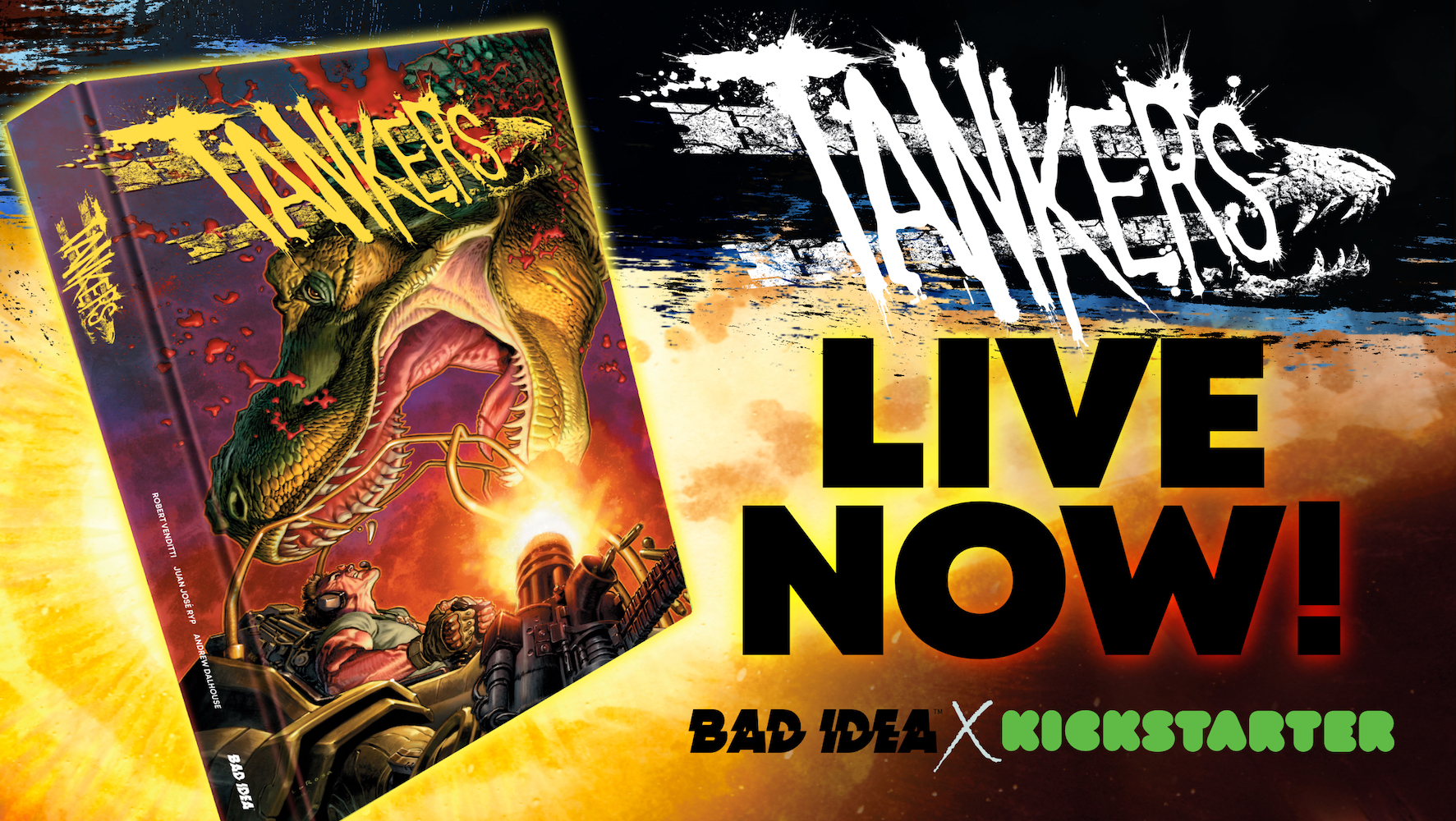 New York Times best-selling writer, Robert Venditti (SUPERMAN ’78, GREEN LANTERN) is joined by a superstar team of artists for Robert Venditti’s TANKERS a graphic novel about a group of brave soldiers who don lethal mechs and time travel back to save the dinosaurs but end up fighting the dinosaurs and then also fighting space-traveling ancient aliens!
