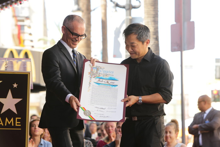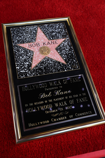 The Hollywood Chamber of Commerce proudly unveiled a Walk of Fame star in honor of the late Batman creator Bob Kane on Wednesday, October 21st. The star in the category of Motion Pictures was dedicated in front of the Guinness World Records Museum right beside the all-new Batmobile from Warner Bros. upcoming film, Batman v Superman: Dawn of Justice.