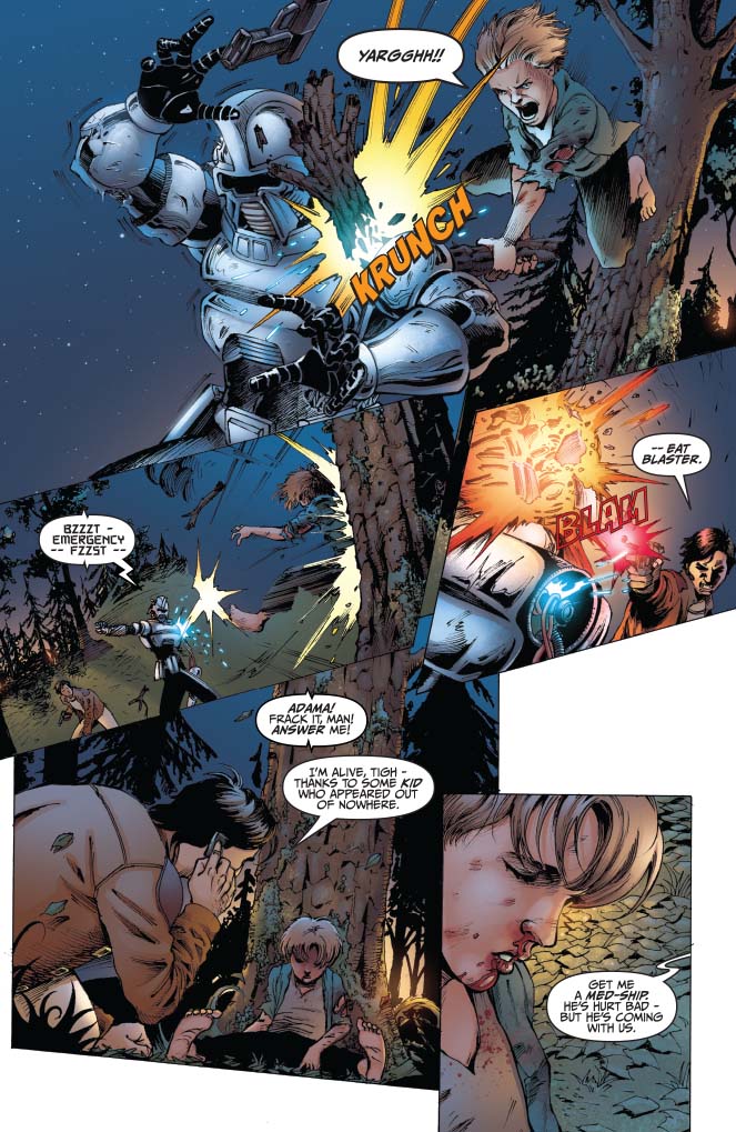 Finally, the origin of Lt. Starbuck can be told! Battlestar Galactica’s roguish Viper pilot, unbeatable gambler, and notorious womanizer has always been a mystery. How did he wind up a feral child on the planet Umbra, and when did he first fight Cylons alongside Commander Adama? What early adventures solidified his friendship with Apollo, and how will Starbuck react once he discovers the identity of the traitor responsible for destroying his family? It’s the world-shaking origin story that fans have been begging over thirty years for, as revealed by #1 New York Times best-selling author Tony Lee and artist Eman Casallos.