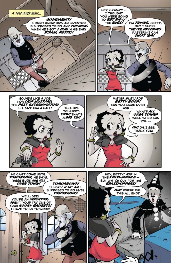 Bugs, bugs, bugs! The town is overrun with them! Sprays can’t get rid of them… Grampy’s inventions can’t shift them… and they’re getting bigger and bigger! Join Betty Boop, Koko, Bimbo and friends as they not only take on the insect kingdom, but also meet a record producer! Opportunity is finally knocking… or is that just the sound of deathwatch beetles?