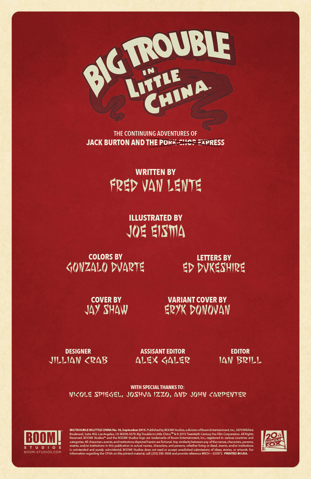 PreviewsBOOM! Studios Previews Big Trouble in Little China #16 By Comix Asylum - Sep 14, 2015 0 640 FacebookTwitterPinterestWhatsApp Big Trouble in Little China #16 Writer: Fred Van Lente Artist: Joe Eisma Jack accidentally brings the spirit of the Pork-Chop Express to life! Big Trouble in Little China #16 1 of 8